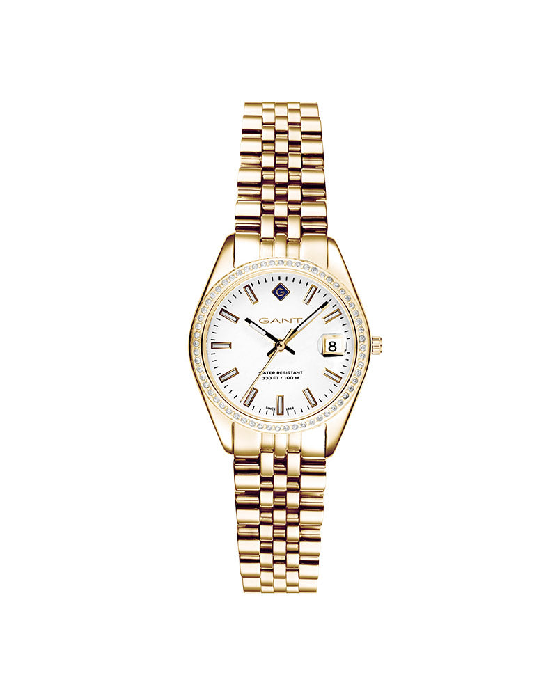 Gant Sussex Mini Bijou dameklokke i gullfarget stål med stener (28mm)
