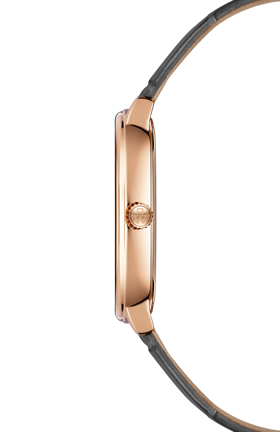 Det mekaniske urverket RW4100, vitner om ekte urmakerkunst og kan beundres gjennom safirglasset på baklokket. Med en gangreserve på 45 timer og en elegant grå kalveskinnsrem, er dette en klokke som kombinerer tradisjon, håndverk og moderne finesse.