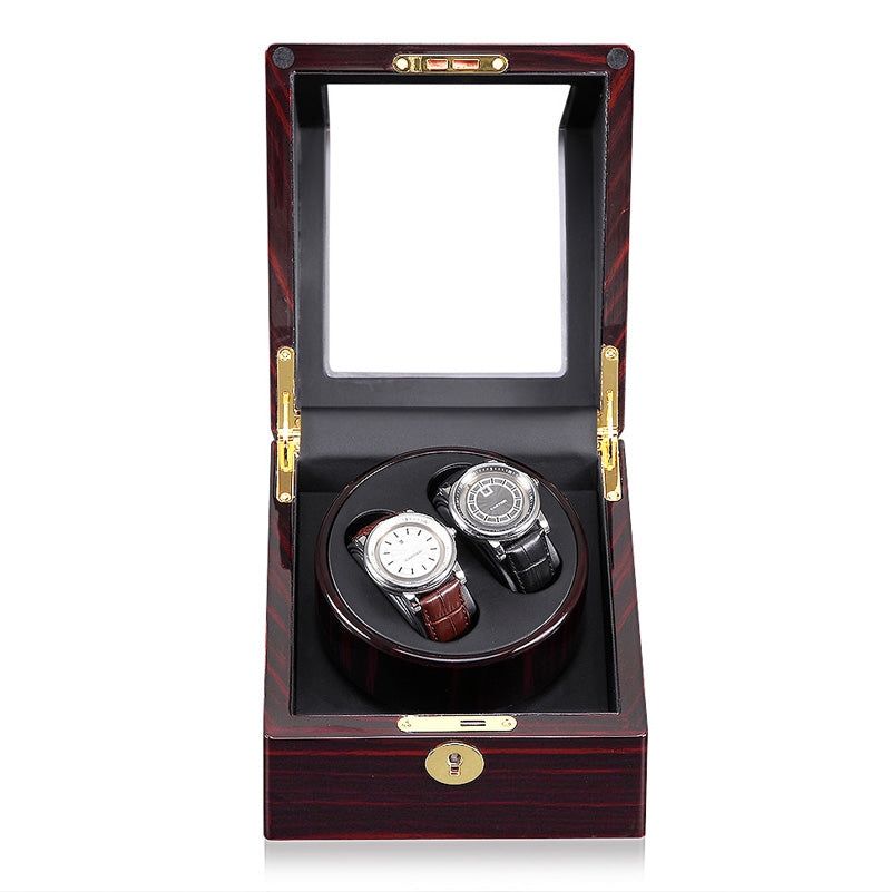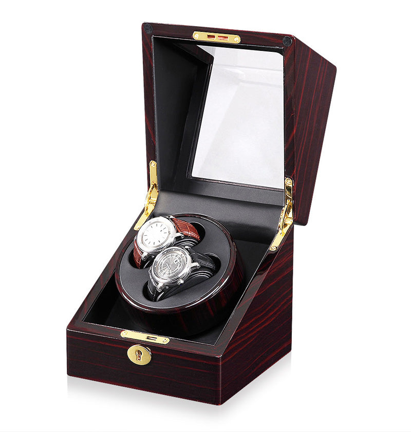 En meget praktisk klokkewinder som holder den automatiske klokken i gang. Winderen har et yttermateriale laget av Glossy MDF og innermateriale laget av premium PU-skinn. Glassvinduet er herdet og gir god beskyttelse. Winderen har plass til to klokker og har en meget energieffektiv, stille japansk presisjons Mabuchi-motor. Winderen har justerbare klokkeholdere og flere forskjellige moduser.