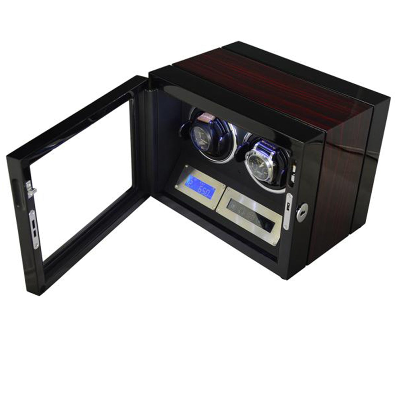 En meget praktisk klokkewinder som holder den automatiske klokken i gang. Winderen har et yttermateriale laget av Glossy MDF og innermateriale laget av premium PU-skinn. Glassvinduet er herdet og gir god beskyttelse. Winderen har plass til to klokker og har fire uavhengige stille japanske presisjons Mabuchi-motorer. Disse er meget energieffektive.