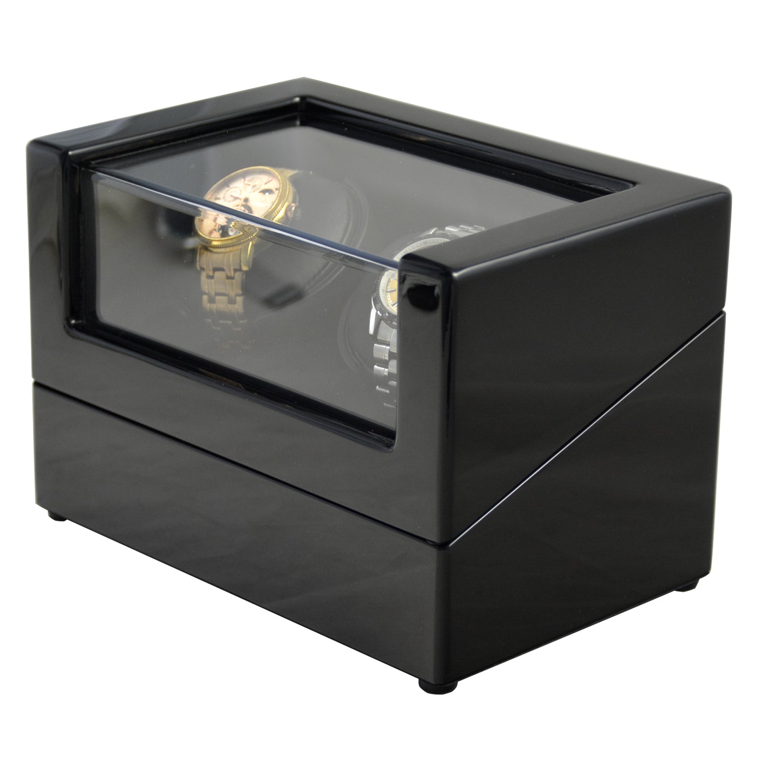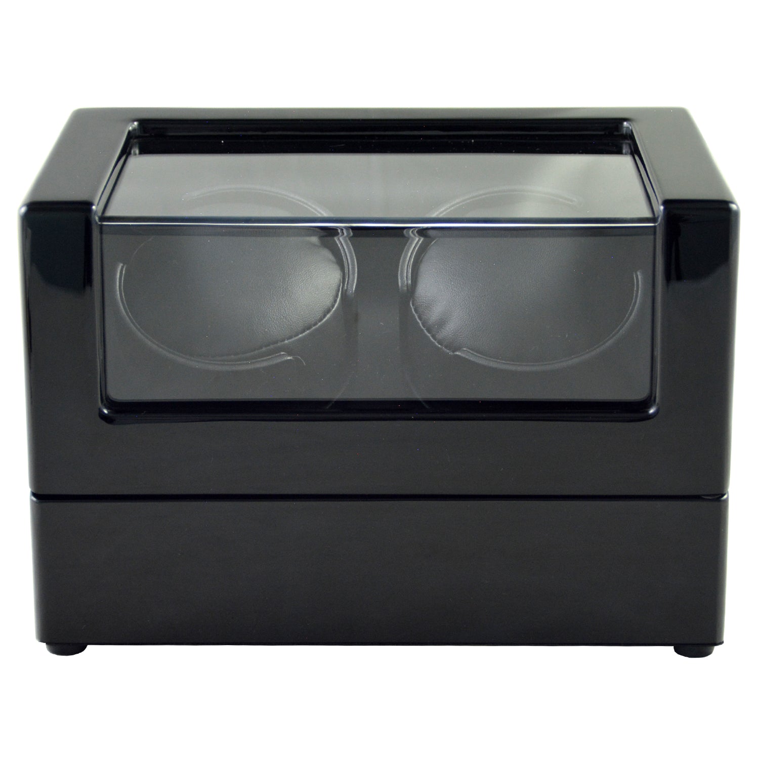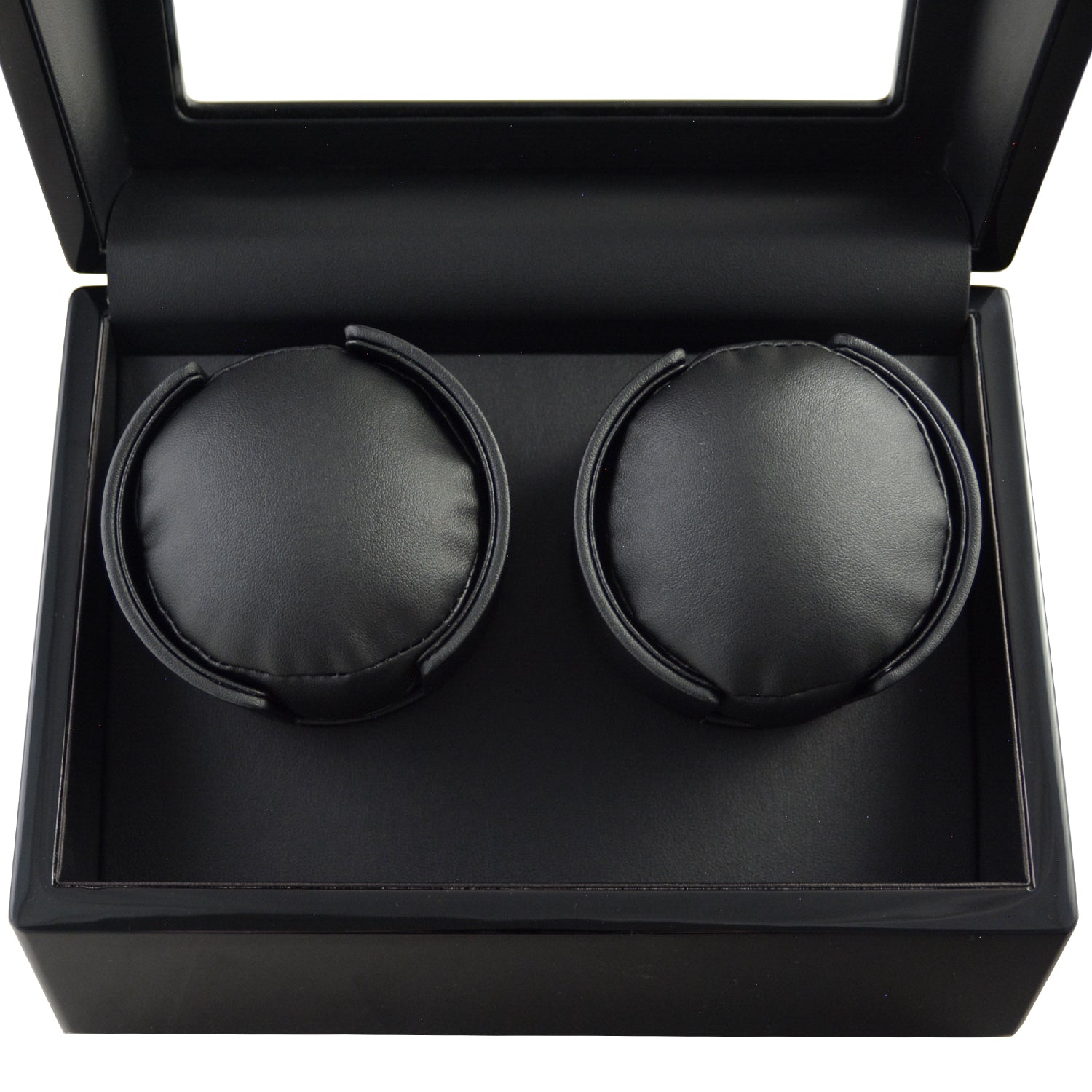 En meget praktisk klokkewinder som holder den automatiske klokken i gang. Winderen har et elegant design med PU-skinn på innsiden som skaper et flott og luksuriøst uttrykk. Glassvinduet er herdet og gir god beskyttelse. Denne winderen har plass til to klokker og har flere forskjellige modus. Yttermaterialet er laget av glossy MDF og boksen er sort både på innsiden og utsiden. Størrelse: 230 x 150 x 255mm.