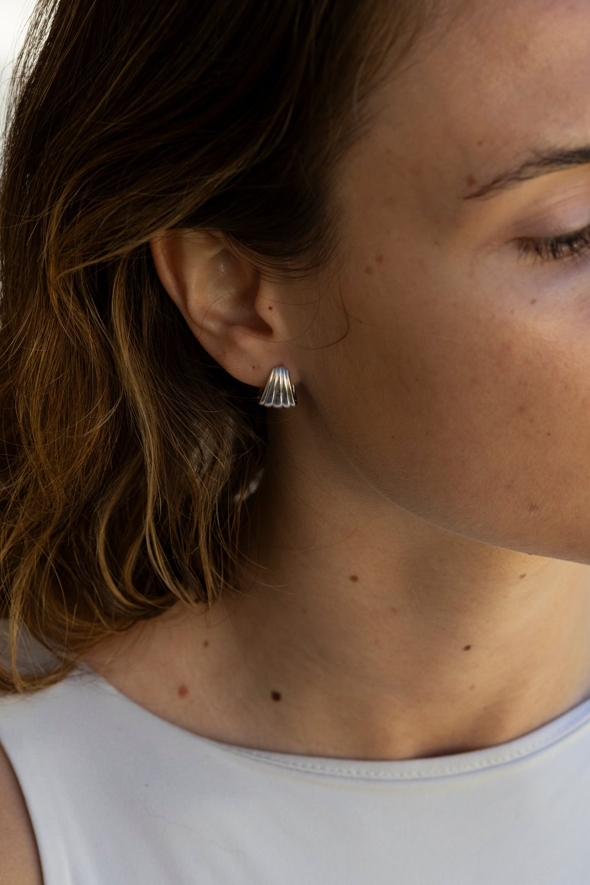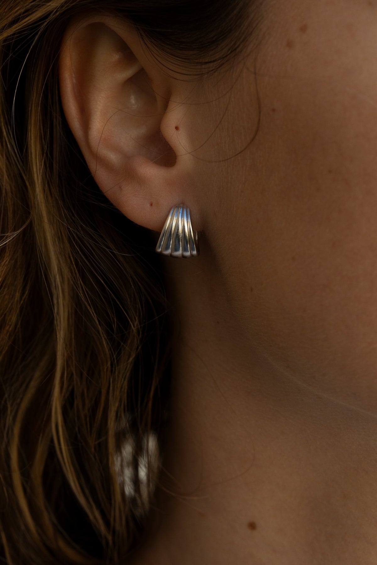 Click øreringene er det perfekte statementsmykket: elegante, kraftfulle og fulle av mening. De er laget av sterling sølv og og er 14 mm lange og 12 mm brede.