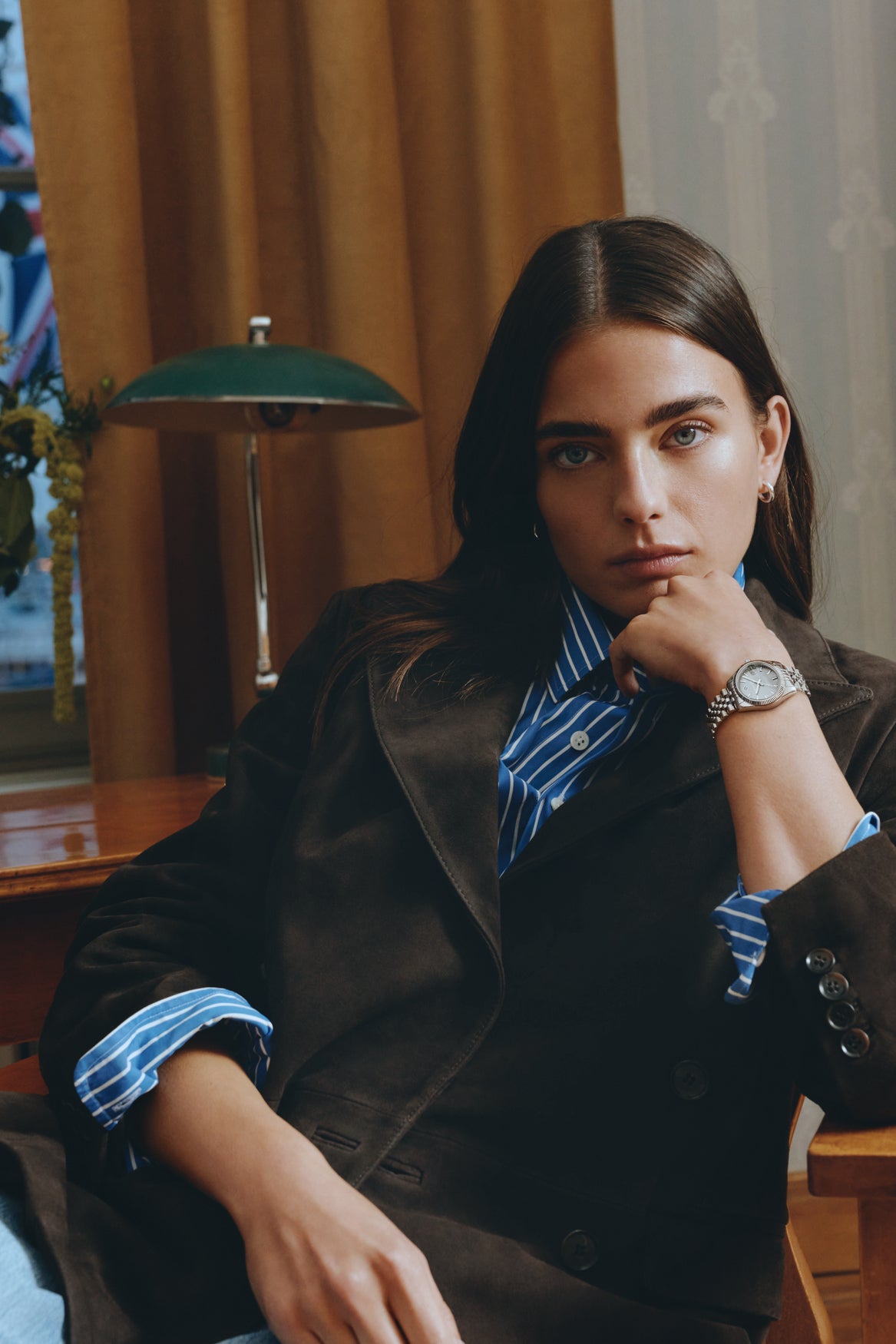 Klokken har en stilren lenke i sølvfarget rustfritt stål og en sofistikert grå urskive med datovisning, som gir et moderne og eksklusivt helhetsinntrykk. De karakteristiske, detaljerte kuttene i den ytre ringen tilfører dybde og gir klokken et unikt og gjenkjennelig Sussex-preg. Med sin kompakte størrelse på 28 mm sitter klokken lett og behagelig på håndleddet, og passer like godt til hverdagsbruk som til mer pyntede anledninger. Det presise quartz-urverket sørger for pålitelig tidtaking, mens mineralglass beskytter urskiven mot riper.